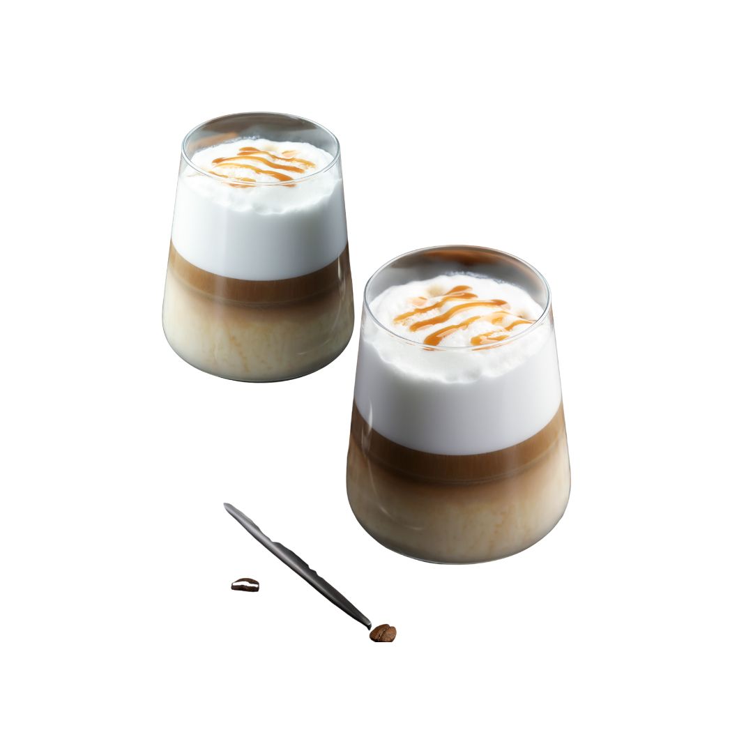 Auch sehr lecker: in Kombination mit einem Dessert auf Mandel- oder Schokoladenbasis, zwei Zutaten, die hervorragend mit dem Kaffeegeschmack harmonieren. Auch Pistazie passt perfekt: einfach ein Gläschen Kaffeecrème – Crema al Caffé – zusammen mit Keksen oder Desserts auf Pistazienbasis servieren.